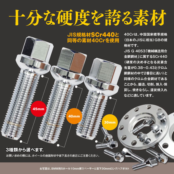 スペーサー対策でボルトをお求めの際は、現在使っているボルト形状を確認し、 スペーサーの厚さ分だけ首下が長くなったものをお選び下さい。